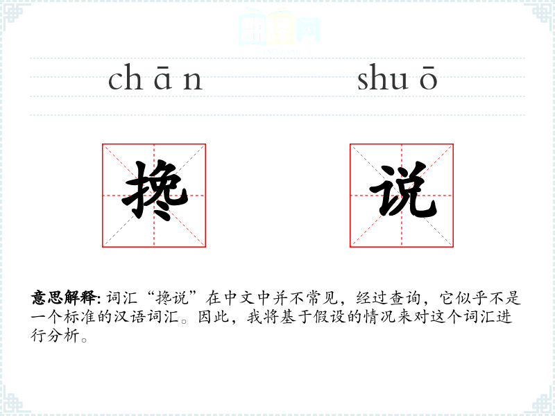 词汇“搀说”在中文中并不常见,经过查询,它似乎不是一个标准的汉语词汇。因此,我将基于假设的情况来对这个词汇进行分析。