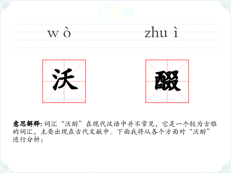 “沃酹”作为一个古雅的词汇,虽然在现代汉语中使用频率不高,但它承载了丰富的历史文化信息,对于理解古代社会和文化具有重要意义。在语言学*和表达中,了解这样的词汇有助于丰富语言的层次和深度。