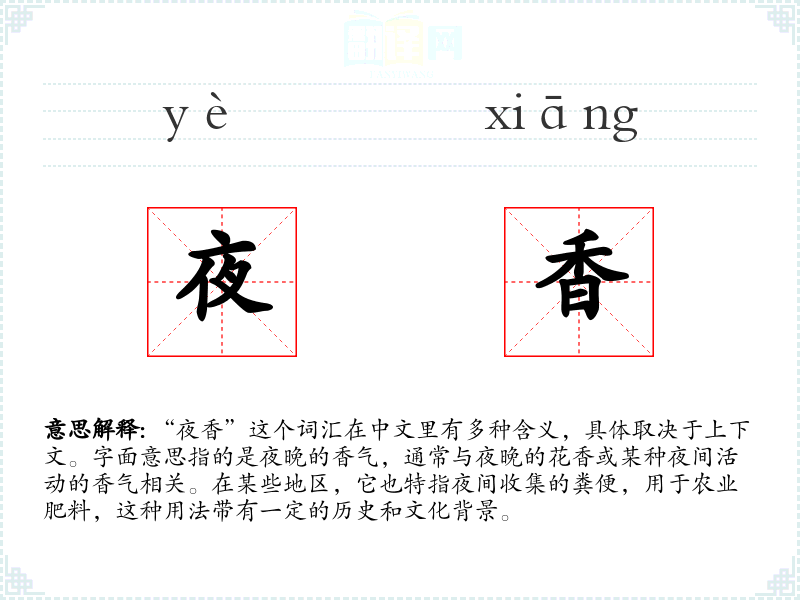 "夜香"的意思解释、夜香是什么意思由翻译网汉语词典查词提供。