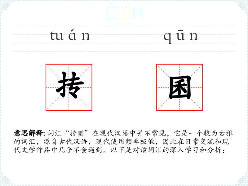 词汇“抟圞”在现代汉语中并不常见,它是一个较为古雅的词汇,源自古代汉语,现代使用频率极低,因此在日常交流和现代文学作品中几乎不会遇到。以下是对该词汇的深入学习和分析: