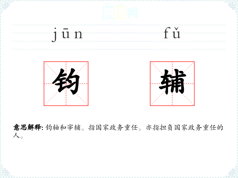钧轴和宰辅。指国家政务重任。亦指担负国家政务重任的人。