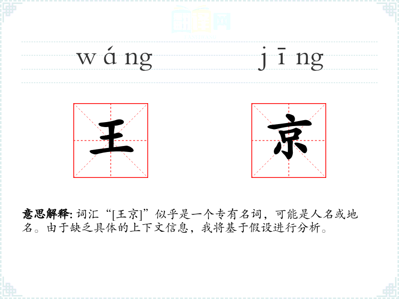 词汇“[王京]”似乎是一个专有名词,可能是人名或地名。由于缺乏具体的上下文信息,我将基于假设进行分析。