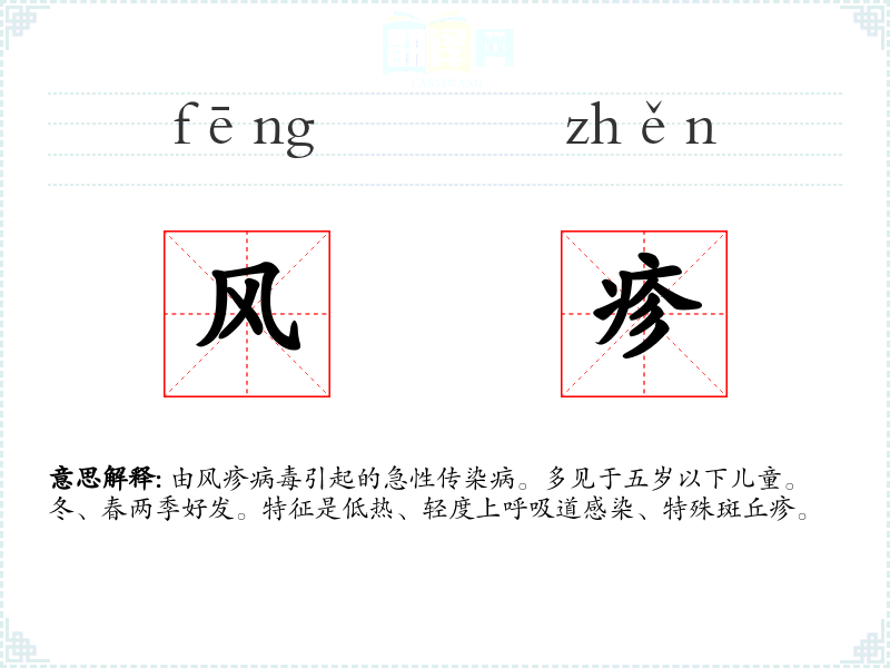 由风疹病毒引起的急性传染病。多见于五岁以下儿童。冬、春两季好发。特征是低热、轻度上呼吸道感染、特殊斑丘疹。