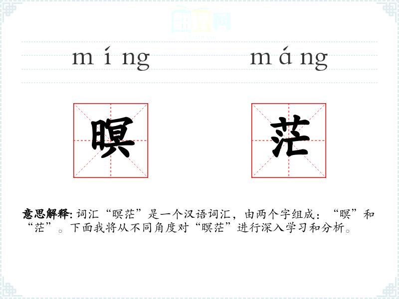 - 词源:“暝”和“茫”都是古代汉语词汇,有着悠久的历史。