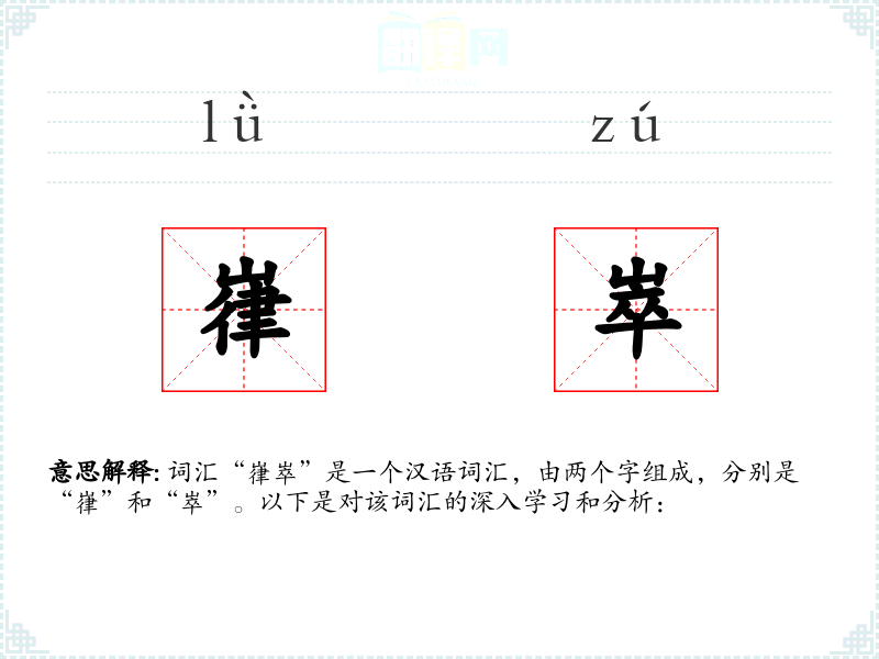 词汇“嵂崒”是一个汉语词汇,由两个字组成,分别是“嵂”和“崒”。以下是对该词汇的深入学*和分析: