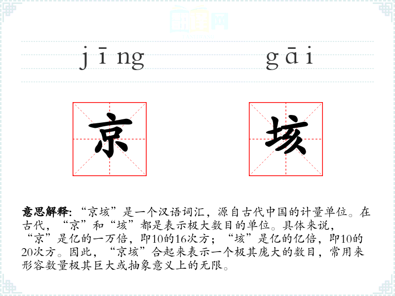 “京垓”是一个富有文化内涵和历史深度的词汇,虽然在现代生活中不常用,但在文学和哲学表达中,它仍然是一个有力的工具,能够帮助我们更好地理解和表达宏大和无限的概念。