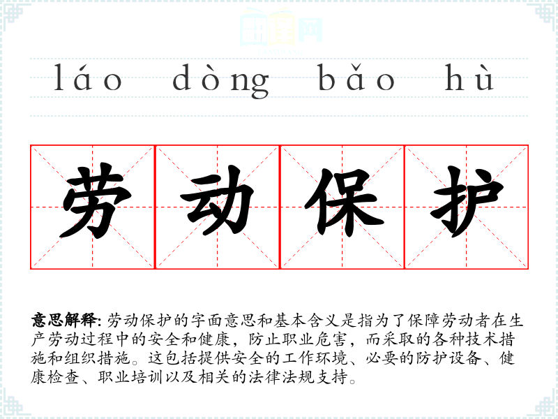 劳动保护的字面意思和基本含义是指为了保障劳动者在生产劳动过程中的安全和健康,防止职业危害,而采取的各种技术措施和组织措施。这包括提供安全的工作环境、必要的防护设备、健康检查、职业培训以及相关的法律法规支持。