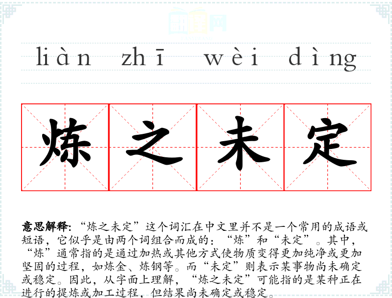 在特定的文化或社会背景下,“炼之未定”可能被用来形容那些正在经历变革或发展中的事物,如新兴产业、创新技术或个人成长等。