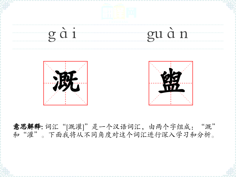 词汇“[溉灌]”是一个汉语词汇,由两个字组成:“溉”和“灌”。下面我将从不同角度对这个词汇进行深入学*和分析。