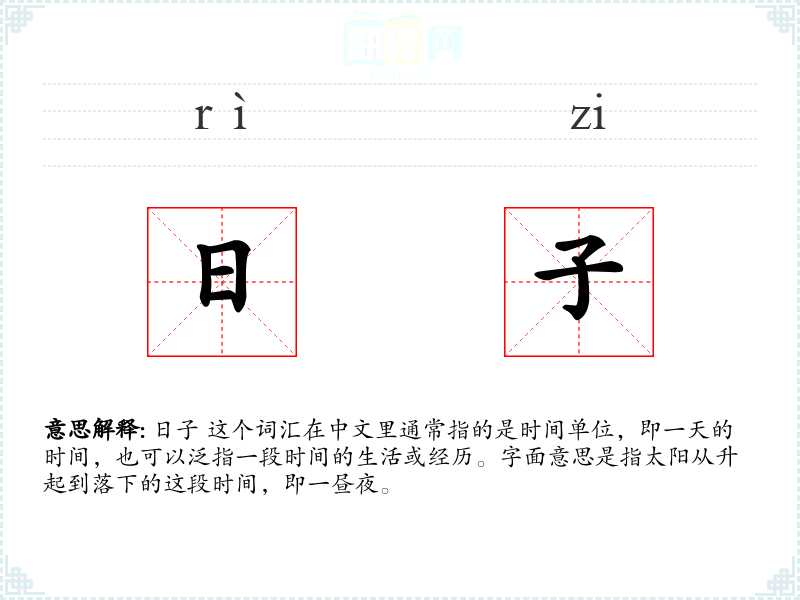 日子 这个词汇在中文里通常指的是时间单位,即一天的时间,也可以泛指一段时间的生活或经历。字面意思是指太阳从升起到落下的这段时间,即一昼夜。