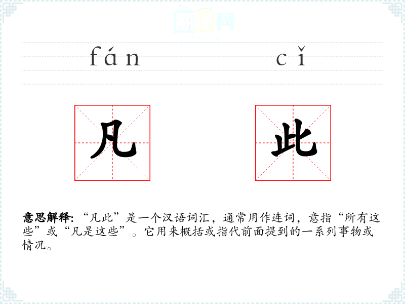 “凡此”是一个汉语词汇,通常用作连词,意指“所有这些”或“凡是这些”。它用来概括或指代前面提到的一系列事物或情况。