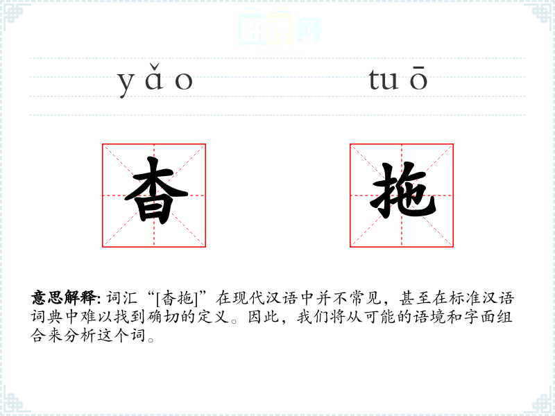 由于“[杳拖]”不是一个标准的汉语词汇,我们可以尝试从字面意思来解释: