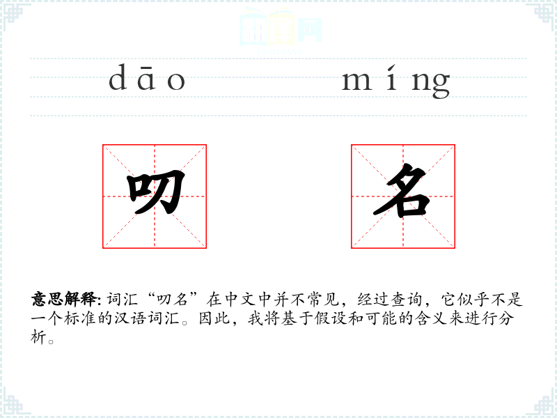 词汇“叨名”在中文中并不常见,经过查询,它似乎不是一个标准的汉语词汇。因此,我将基于假设和可能的含义来进行分析。