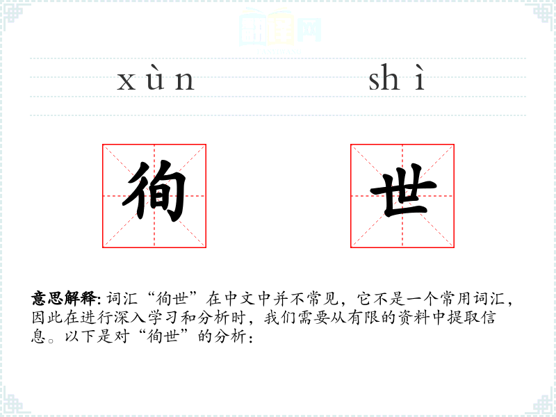词汇“徇世”在中文中并不常见,它不是一个常用词汇,因此在进行深入学*和分析时,我们需要从有限的资料中提取信息。以下是对“徇世”的分析: