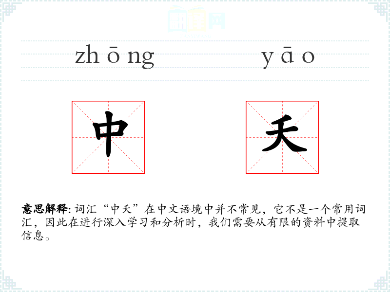 词汇“中夭”在中文语境中并不常见,它不是一个常用词汇,因此在进行深入学*和分析时,我们需要从有限的资料中提取信息。