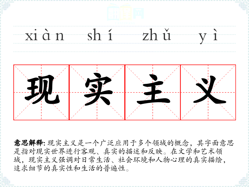 现实主义是一个广泛应用于多个领域的概念,其字面意思是指对现实世界进行客观、真实的描述和反映。在文学和艺术领域,现实主义强调对日常生活、社会环境和人物心理的真实描绘,追求细节的真实性和生活的普遍性。