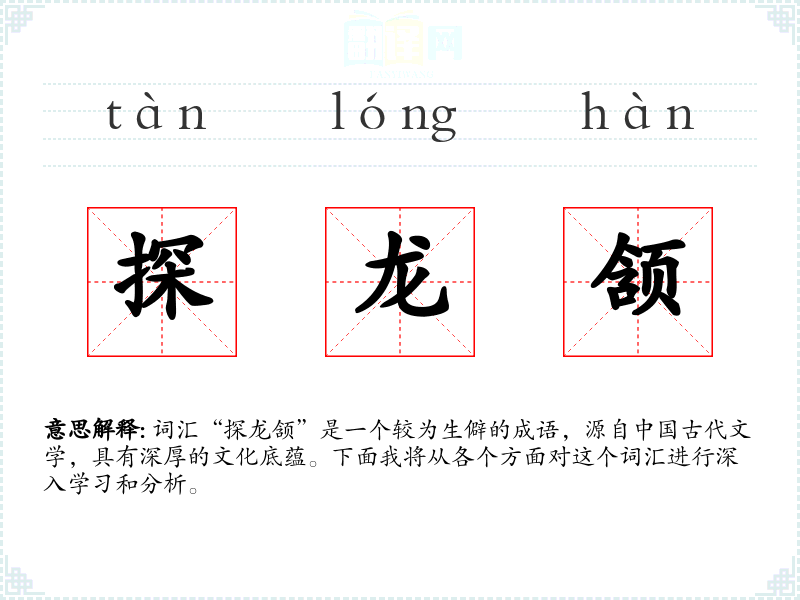 词汇“探龙颔”是一个较为生僻的成语,源自*古代文学,具有深厚的文化底蕴。下面我将从各个方面对这个词汇进行深入学和分析。