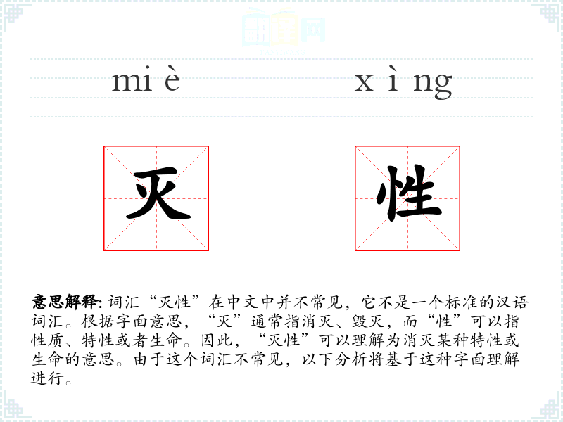 在其他语言中,可能没有直接对应“灭性”的词汇,但可以找到描述类似概念的词汇,如英语中的“destructive”或“fatal”。