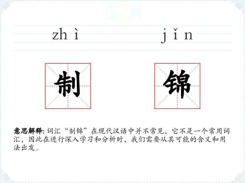 - 反义词:无(因为“制锦”不是一个常用词汇,所以很难找到直接的反义词)