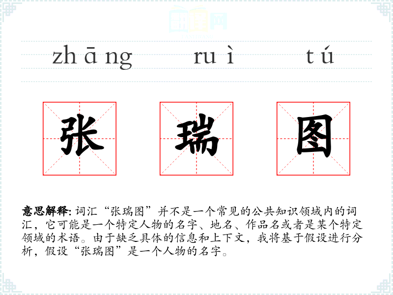 如果“张瑞图”是一个中文名字,在其他语言中可能没有直接对应的词汇,但可以通过翻译传达其吉祥和规划的含义。