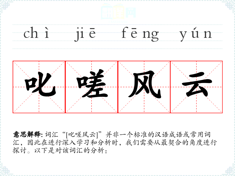 词汇“[叱嗟风云]”并非一个标准的汉语成语或常用词汇,因此在进行深入学习和分析时,我们需要从最契合的角度进行探讨。以下是对该词汇的分析: