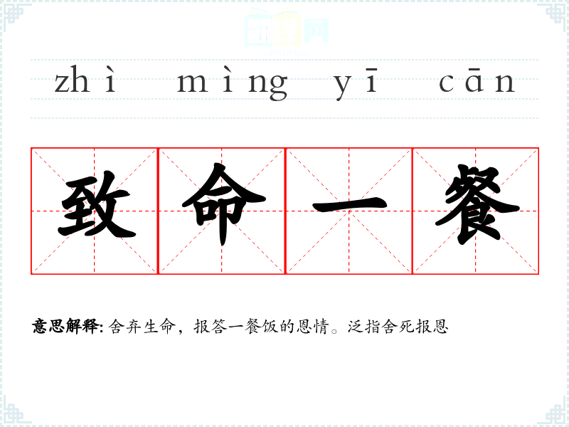 舍弃生命,报答一餐饭的恩情。泛指舍死报恩