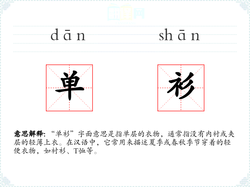 单衫的分字解释