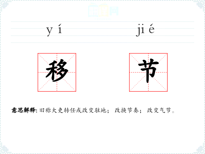 旧称大吏转任或改变驻地; 改换节奏; 改变气节。