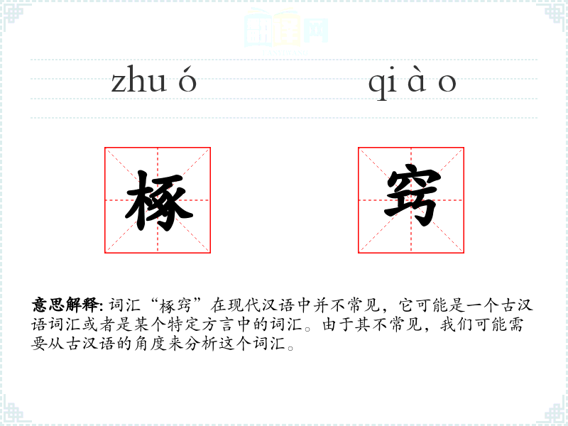 词汇“椓窍”在现代汉语中并不常见,它可能是一个古汉语词汇或者是某个特定方言中的词汇。由于其不常见,我们可能需要从古汉语的角度来分析这个词汇。