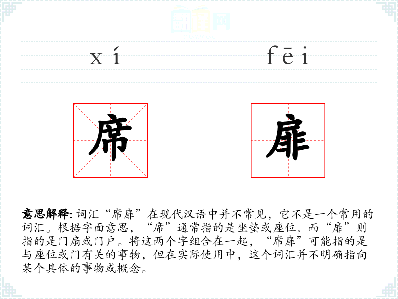 由于“席扉”不是一个常用词汇,它的基本含义并不明确。可能需要结合特定的语境来理解其意义。