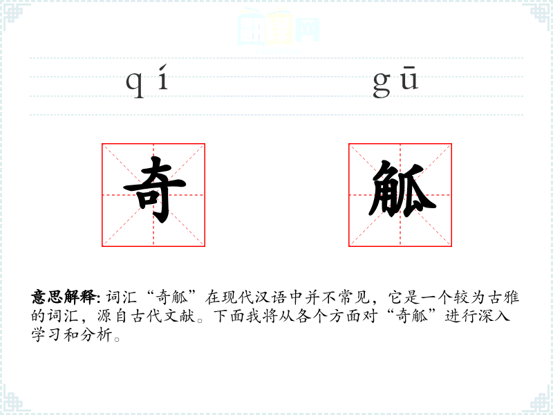 词汇“奇觚”在现代汉语中并不常见,它是一个较为古雅的词汇,源自古代文献。下面我将从各个方面对“奇觚”进行深入学*和分析。