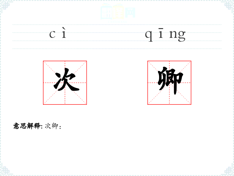 - 字面意思:字面上的“次”表示次序中的第二位,“卿”在古代**指高级官员或贵族。
