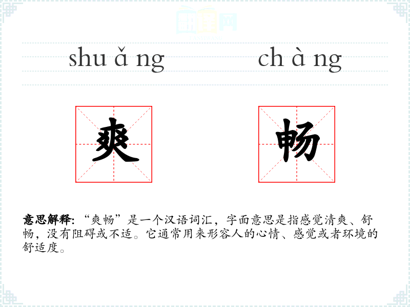 “爽畅”一词的词源较为直接,由“爽”和“畅”两个字组成,这两个字在古代汉语中都有清晰、流畅的含义。随着语言的发展,这个词逐渐被用来形容更加广泛的感觉和状态。