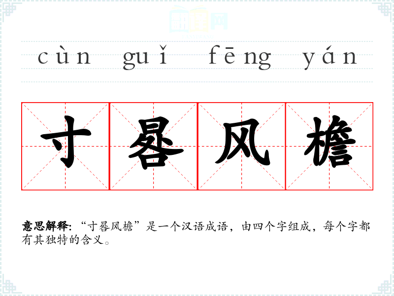 “寸晷风檐”是一个汉语成语,由四个字组成,每个字都有其独特的含义。