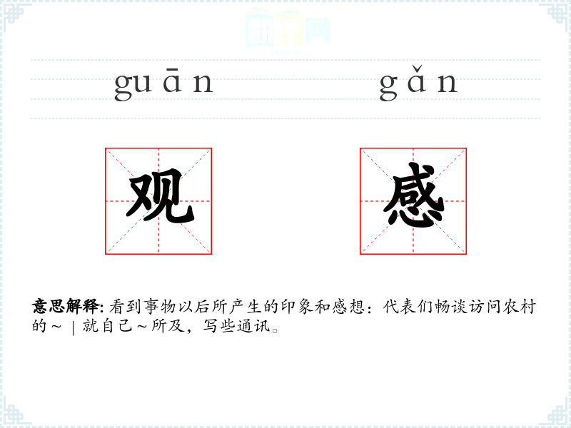看到事物以后所产生的印象和感想:代表们畅谈访问农村的~|就自己~所及,写些通讯。