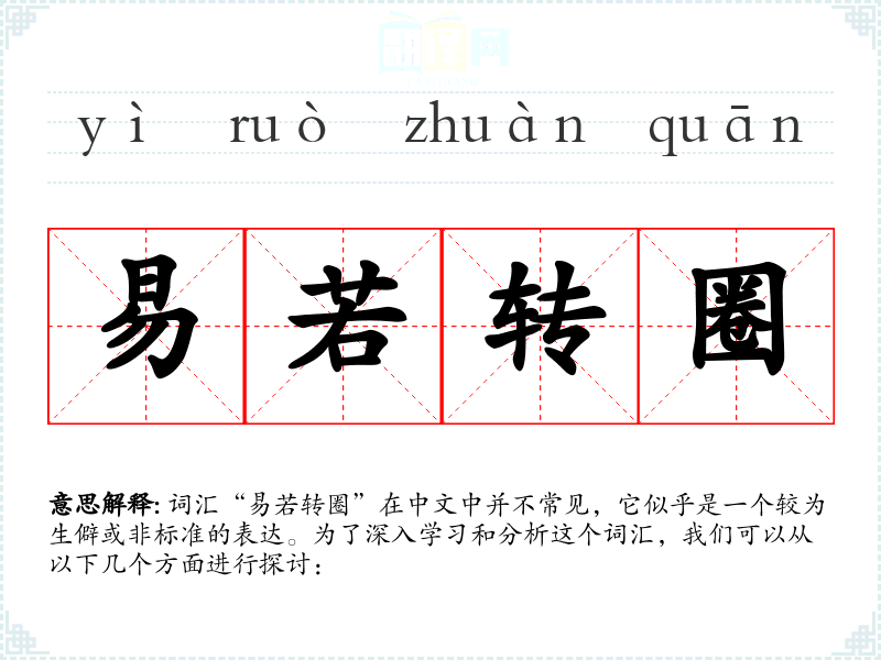 词汇“易若转圈”在中文中并不常见,它似乎是一个较为生僻或非标准的表达。为了深入学习和分析这个词汇,我们可以从以下几个方面进行探讨: