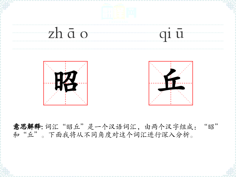 - 词源:“昭”和“丘”都是古代汉语词汇,具有悠久的历史。