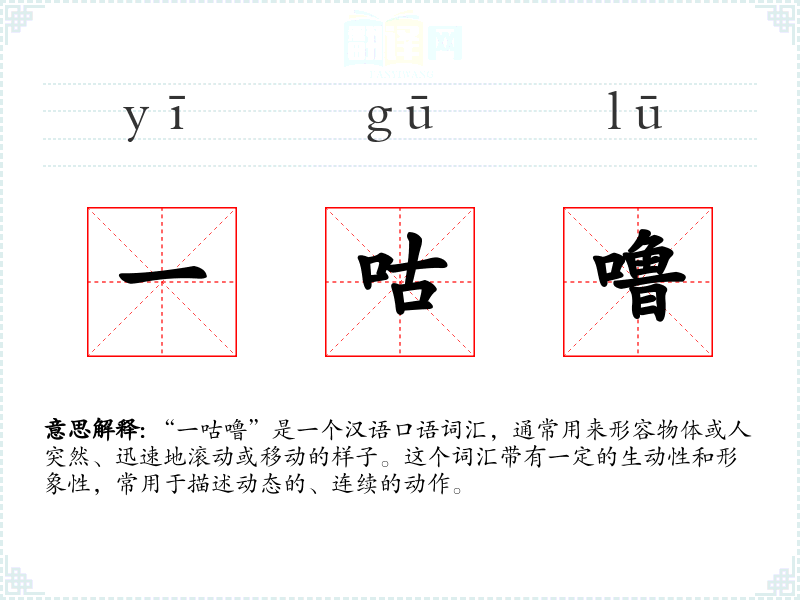 “一咕噜”是一个汉语口语词汇,通常用来形容物体或人突然、迅速地滚动或移动的样子。这个词汇带有一定的生动性和形象性,常用于描述动态的、连续的动作。