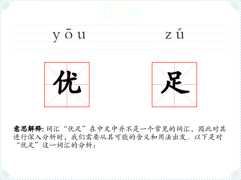 "优足"的意思解释、优足是什么意思由翻译网汉语词典查词提供。