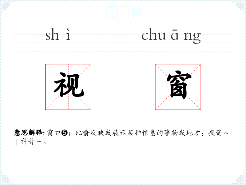 窗口➎;比喻反映或展示某种信息的事物或地方:投资~|科普~。