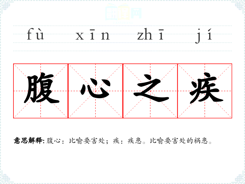 腹心:比喻要害处;疾:疾患。比喻要害处的祸患。