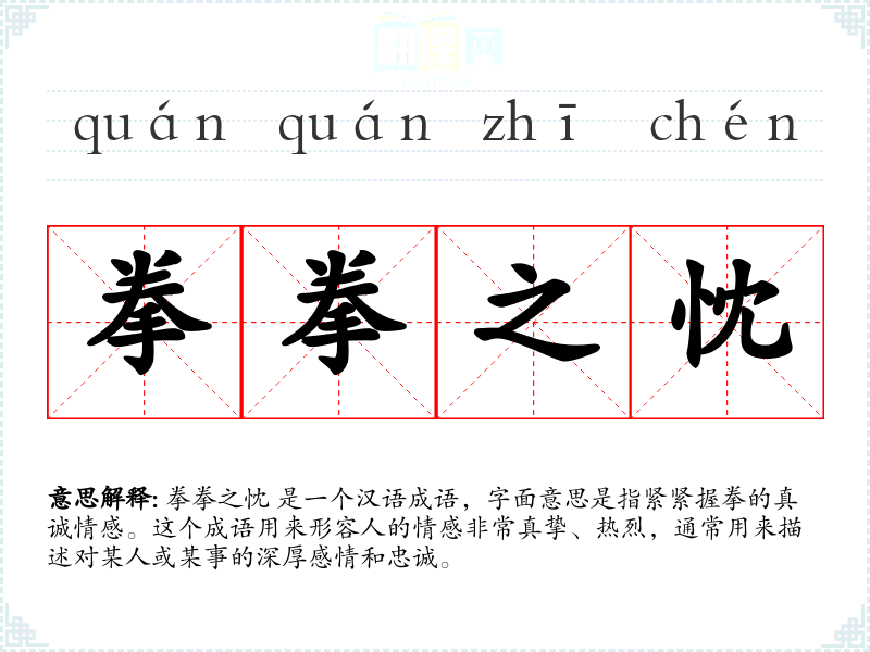 拳拳之忱 这个成语在汉语中是一个非常有力的表达真挚情感的词汇。它不仅在文学和正式场合中使用广泛,而且在日常生活中也能传达深厚的情感。了解和使用这个成语,对于理解和表达中国人的情感文化具有重要意义。