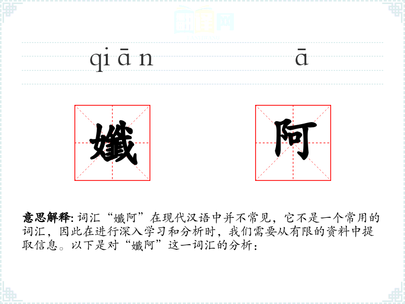 词汇“孅阿”在现代汉语中并不常见,它不是一个常用的词汇,因此在进行深入学习和分析时,我们需要从有限的资料中提取信息。以下是对“孅阿”这一词汇的分析: