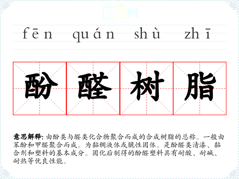 酚醛树脂的分字解释