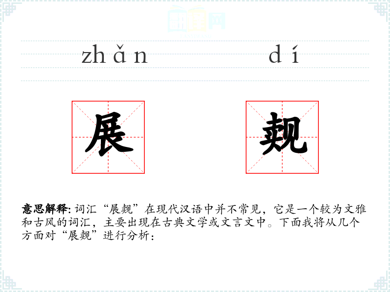 词汇“展觌”在现代汉语中并不常见,它是一个较为文雅和古风的词汇,主要出现在古典文学或文言文中。下面我将从几个方面对“展觌”进行分析: