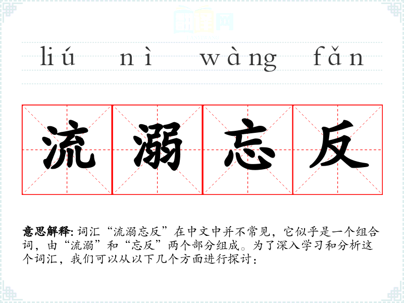 词汇“流溺忘反”在中文中并不常见,它似乎是一个组合词,由“流溺”和“忘反”两个部分组成。为了深入学习和分析这个词汇,我们可以从以下几个方面进行探讨: