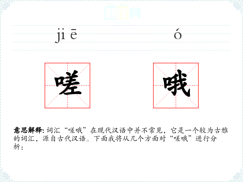 词汇“嗟哦”在现代汉语中并不常见,它是一个较为古雅的词汇,源自古代汉语。下面我将从几个方面对“嗟哦”进行分析: