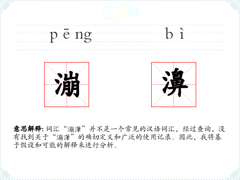 由于“漰潷”不是一个标准词汇,我们无法提供确切的基本定义。如果“漰潷”是某个方言或特定领域的术语,它可能指的是某种特定的现象、物体或概念。