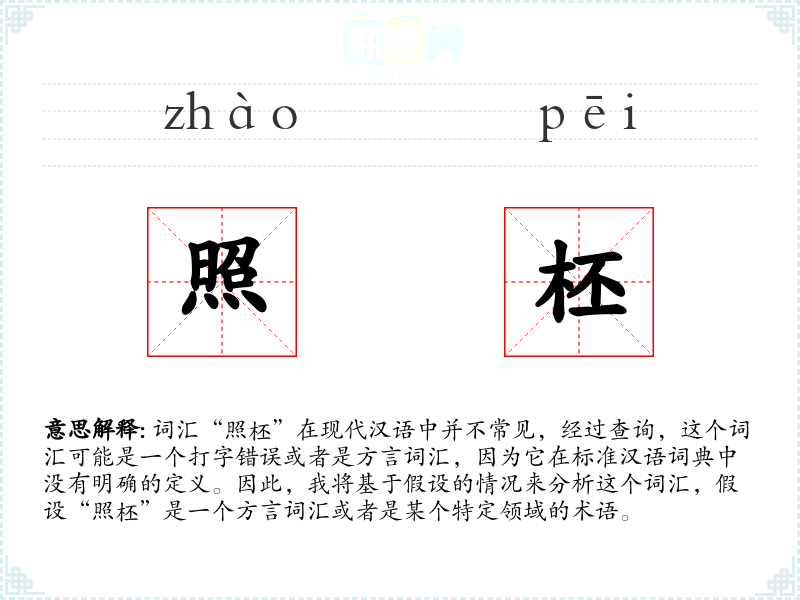 词汇“照柸”在现代汉语中并不常见,经过查询,这个词汇可能是一个打字错误或者是方言词汇,因为它在标准汉语词典中没有明确的定义。因此,我将基于假设的情况来分析这个词汇,假设“照柸”是一个方言词汇或者是某个特定领域的术语。