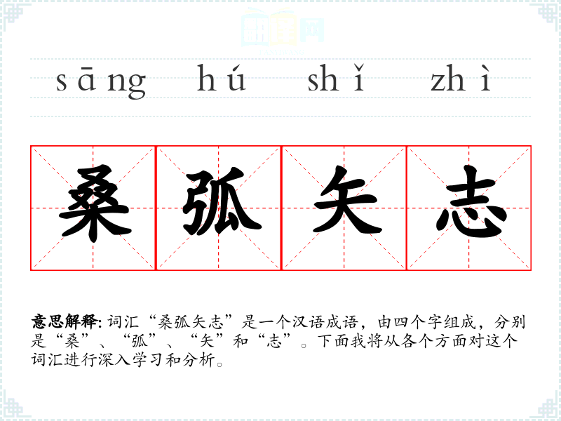 - 字面意思:桑弧指的是用桑木制成的弓,矢志则是指箭矢所指向的目标或决心。